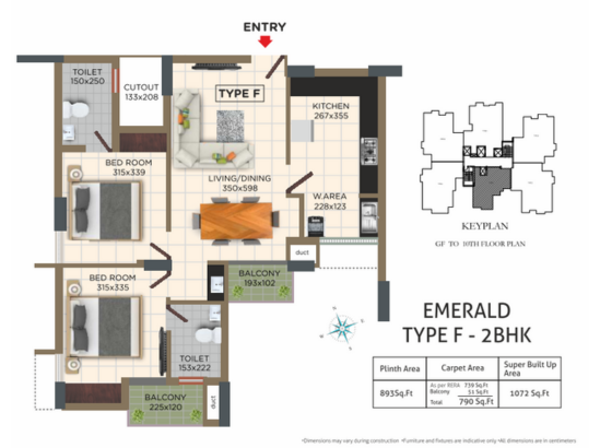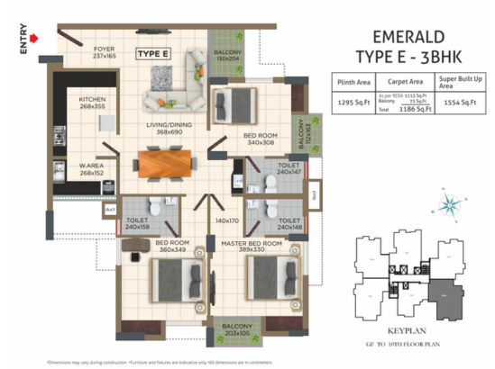 - Counter /Wall mounted wash basin in dining area and wall mounted wash basin for all bedroom attached toilets inside apartments